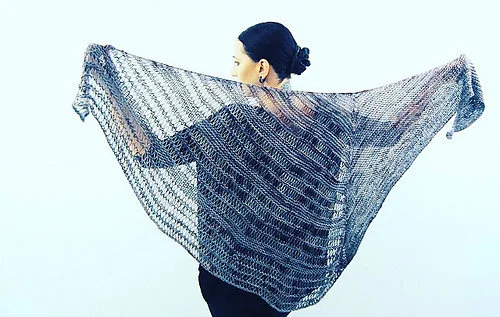 A simple garter stitch trianglular shawl becomes so much more with a few drop stitch short rows.