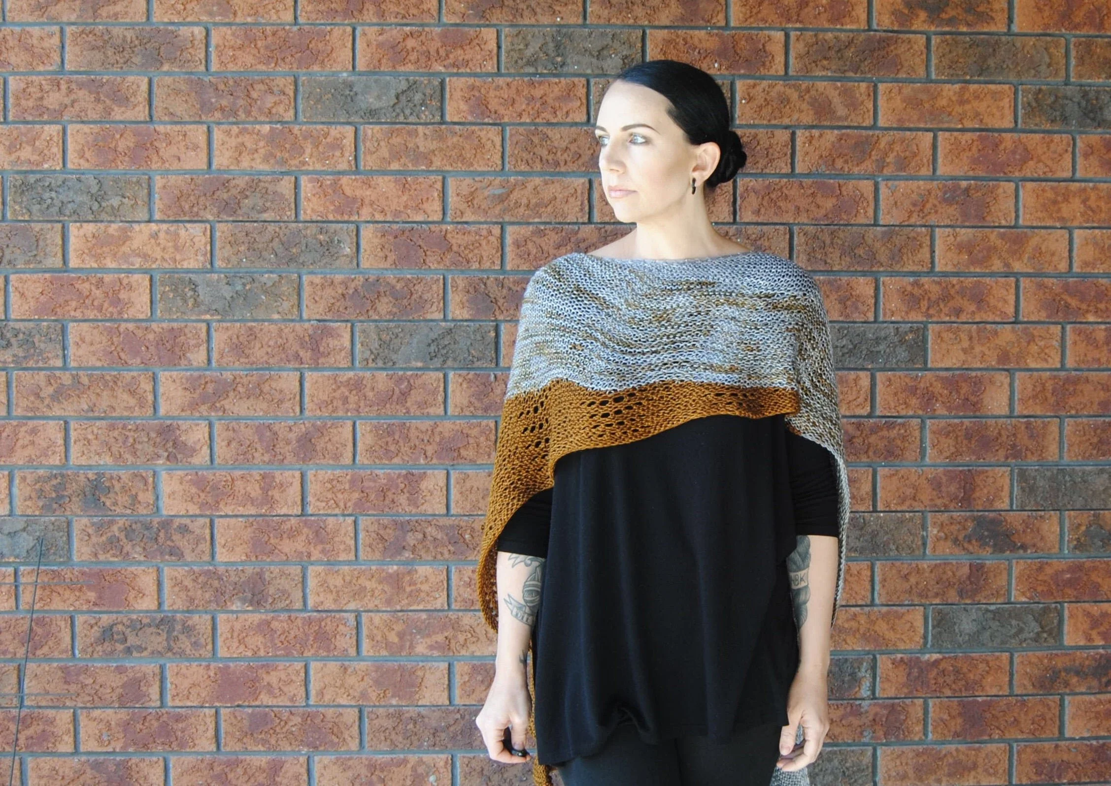 Shiny silver billows into warm copper in this wavy, asymmetrical shawl.