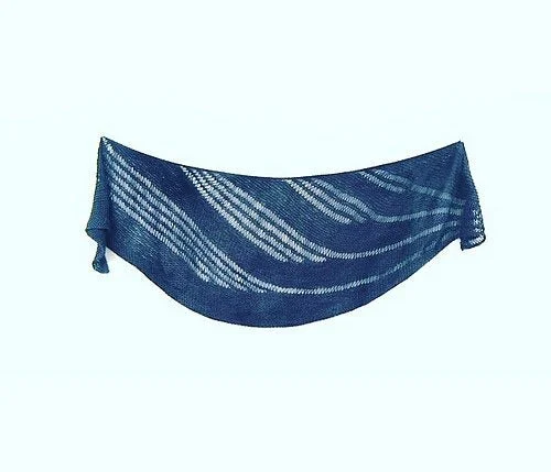 Dropped stitches and short rows give this asymmetrical semi-circular shawl it’s unique shape.