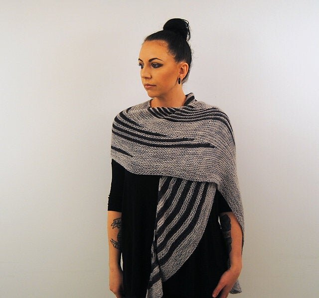 Striped short row inserts give this garter stitch semi-circlular shawl just a touch of flair.