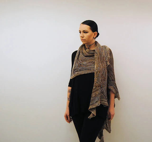 Increases and eyelets give this garter stitch shawl it’s sharp edges.