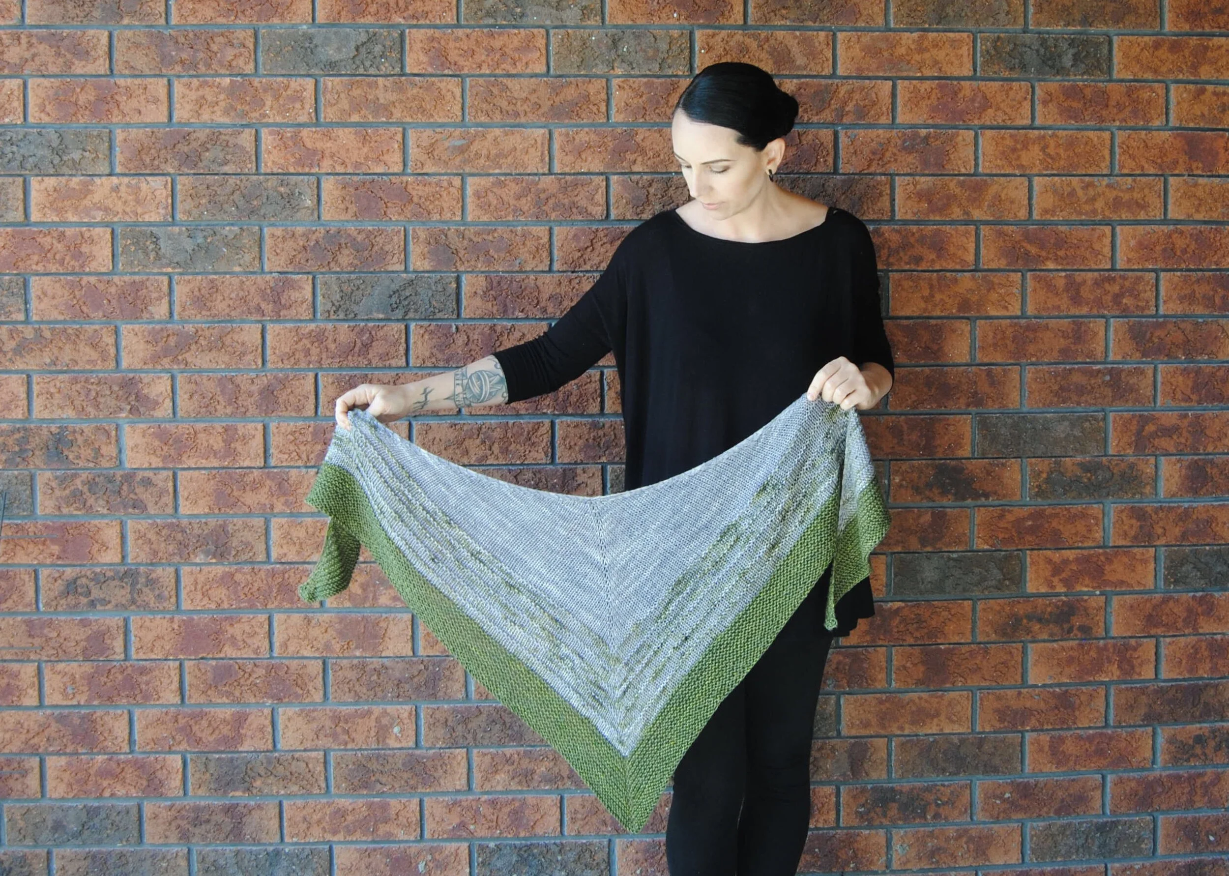 Shimmering silver edges into glowing green in this textured triangular shawl.