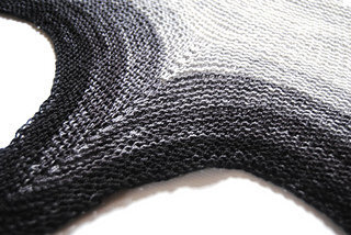 A sharp, jagged edge, fading into darkness, give this shawl its unique shape.