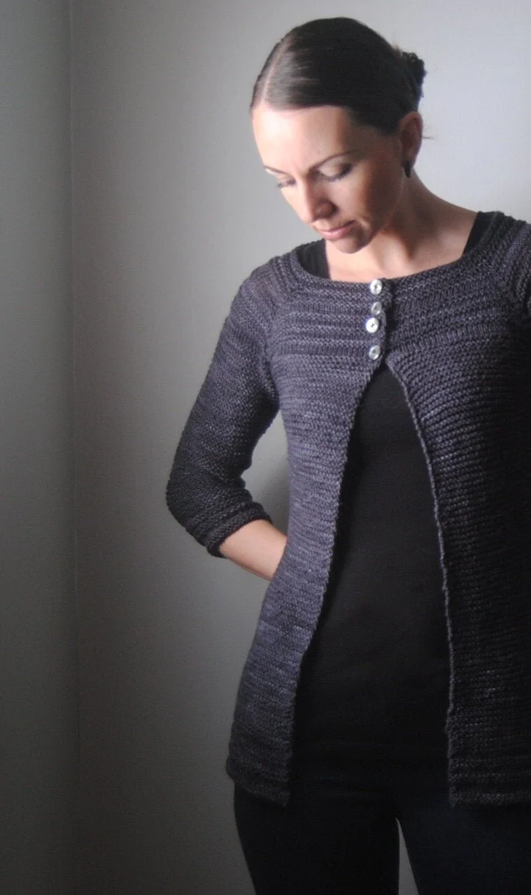 Garter stitch, stockinette details, and four of your favourite buttons make this everyday cardigan a quick knit and a wardrobe staple.
