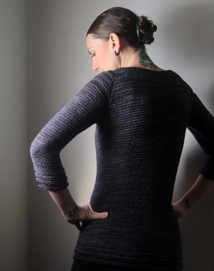 Finished bust measurements: 32 (34.4, 36.8, 38.4, 40.8, 42.4, 44.8, 46.4, 48)”