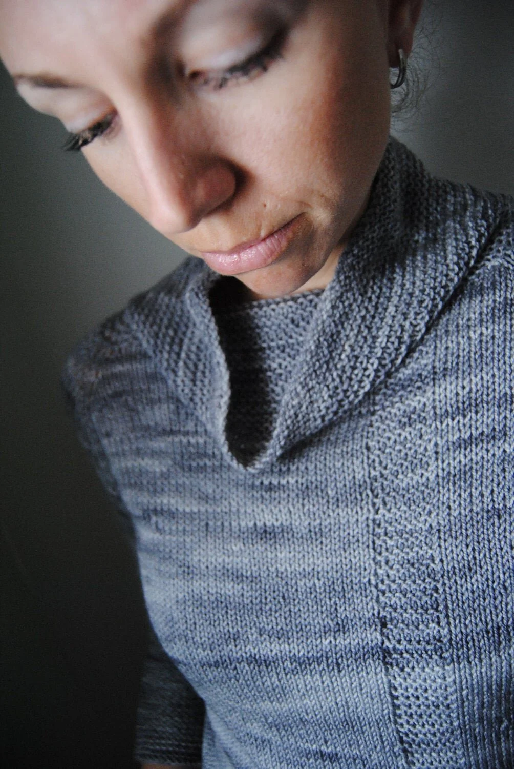 Knit from the top down with a cowl neck and simple garter stitch details, this sweater will quickly become a favourite in your wardrobe.