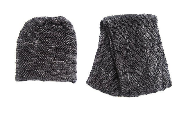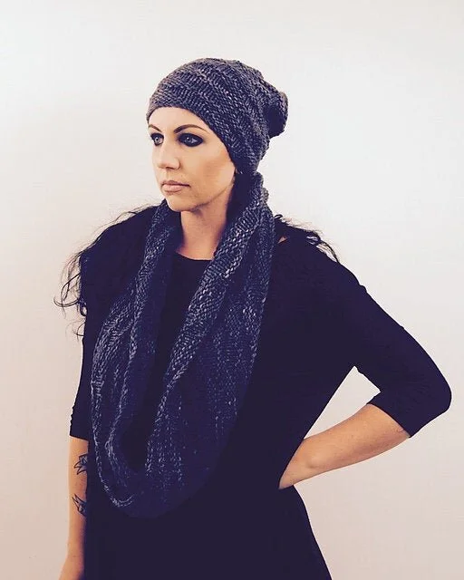 Gunmetal grey, sharp textural design, reversible toque & infinity loop cowl set.