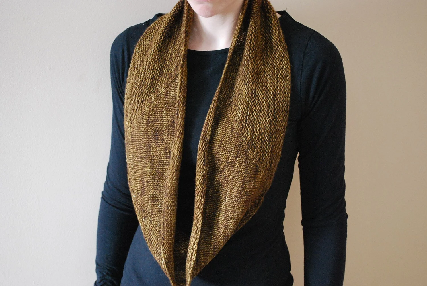Variance is knit in the round with either fingering weight or worsted weight yarn; for a light and drapey or thick and cozy cowl, whichever you prefer. It features garter stitch triangles decreasing into a stockinette background, or are they stockinette triangles emerging from a backdrop of garter stitch? Opinions may vary.