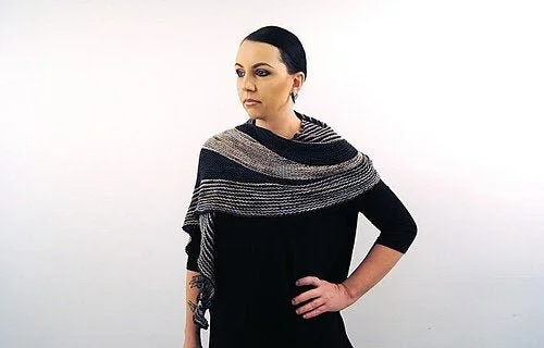 Pick two of your favourite colours to stripe together in this fun semi-circular shawl.